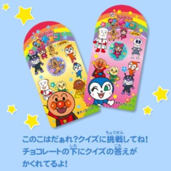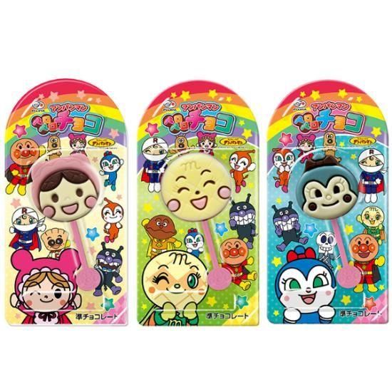 ■ばいきんまん:砂糖(国内製造、外国製造)、植物油脂、カカオマス、全粉乳、乳糖、脱脂粉乳、ココアバター、油脂加工品/乳化剤(大豆由来)、香料(乳・大豆由来)、野菜色素