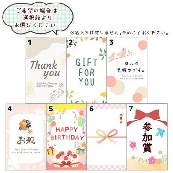 用途に合わせたタグを袋にお付けします。選択肢よりお選びください。