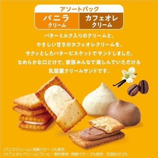 なめらかな口どけで、家族みんなで楽しんでいただける乳酸菌クリームサンドです。