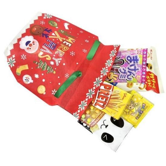 サンタとトナカイが描かれた巾着にお菓子を詰め合わせました♪