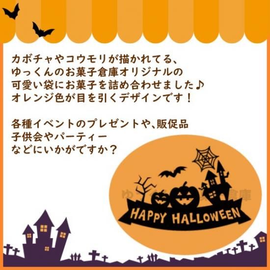 ハロウィンらしい柄が書かれたゆっくんのお菓子倉庫オリジナル袋に