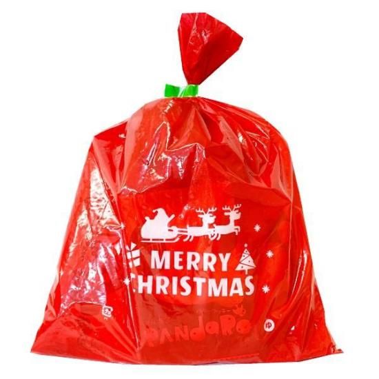 ■クリスマスにピッタリの、サンタさんとトナカイ柄が書かれた ゆっくんのお菓子倉庫オリジナル袋にお菓子を詰め合わせました。