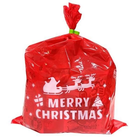 ■クリスマスにピッタリの、サンタさんとトナカイ柄が書かれた ゆっくんのお菓子倉庫オリジナル袋にお菓子を詰め合わせました。