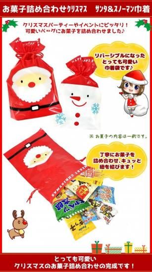 クリスマス お菓子 駄菓子 詰め合わせ 7点セット (サンタ&スノーマン巾着)(駄菓子 販促品 イベント プレゼント 子供会) (1個)(数量限定)* xmasXHS-3NS