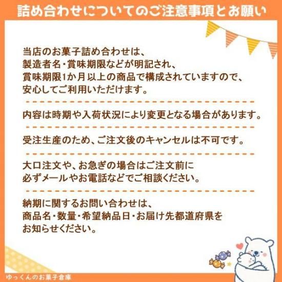*ゆっくんのお菓子倉庫のお菓子の詰め合わせは、製造者名、賞味期限などが記載されていて、