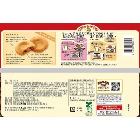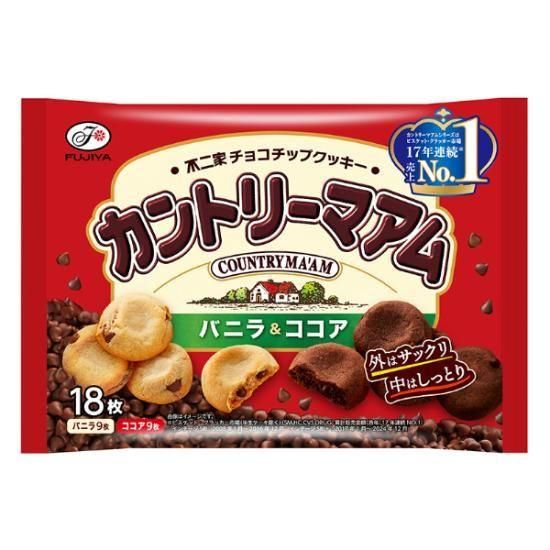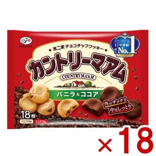 不二家 カントリーマアム バニラ&ココア 18枚×18袋入 (チョコチップ クッキー お菓子 まとめ買い) (ケース販売)(Y12) (本州一部送料無料) 4902555170893-18