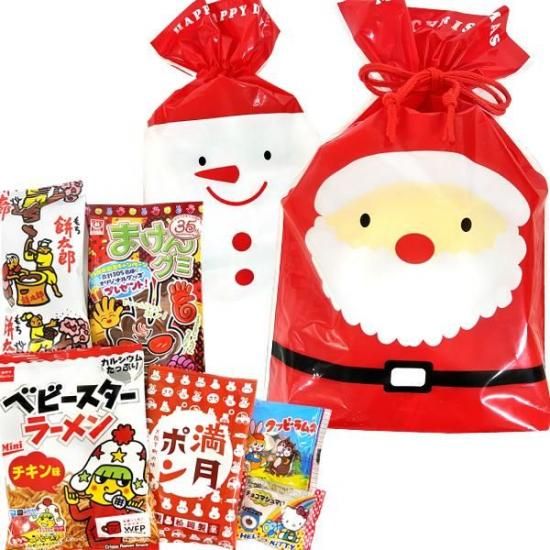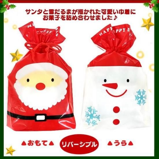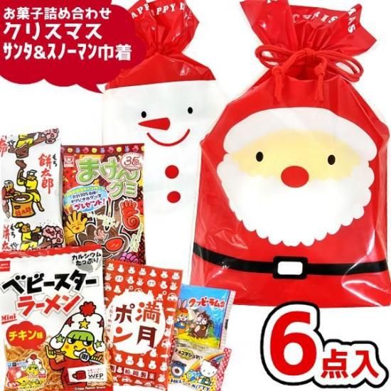 クリスマス お菓子 駄菓子 詰め合わせ 6点セット (サンタ&スノーマン巾着 (小) A300)(駄菓子 販促品 イベント プレゼント 子供会)(1個)(数量限定)(レ)* xmasXHS-4NS